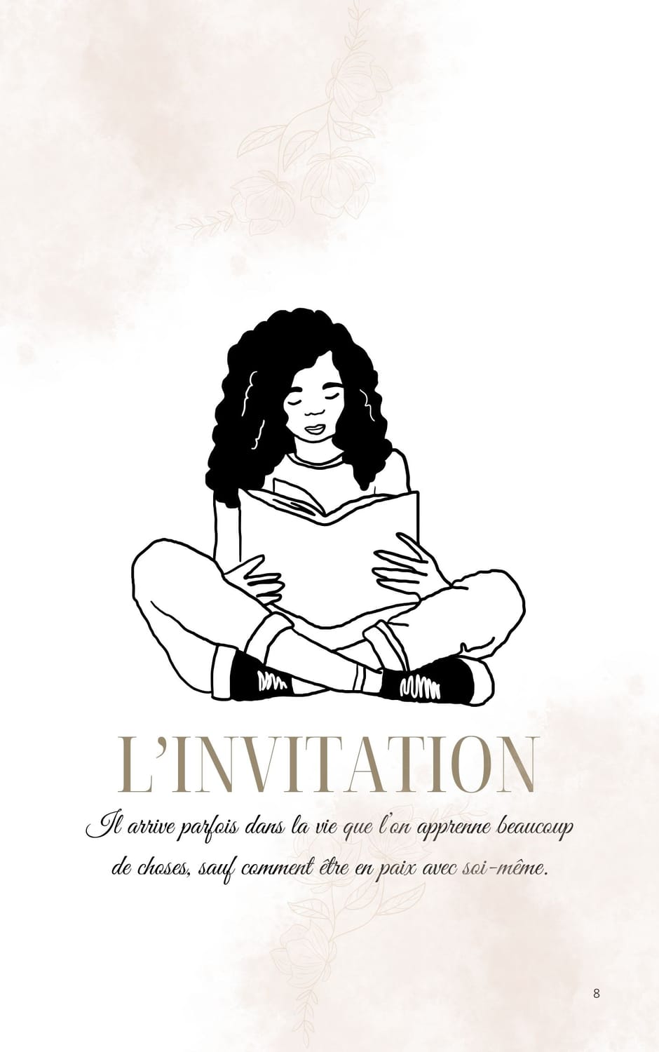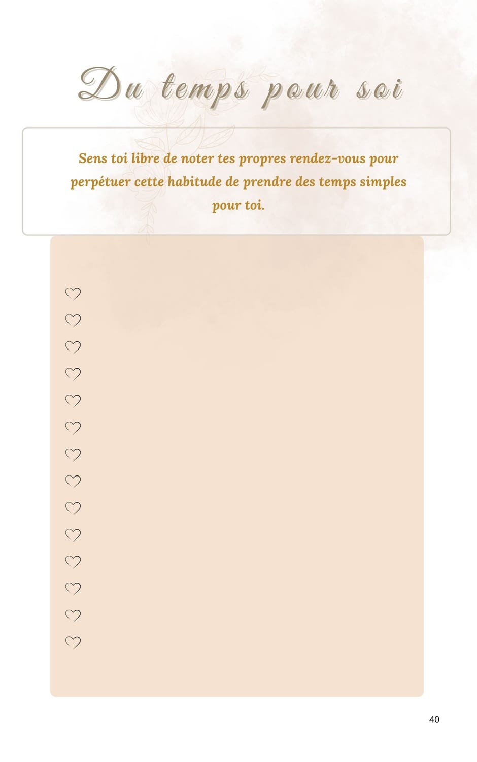 Tout le long tu retrouveras des questions simples d’introspection et de petits gestes pour toi.