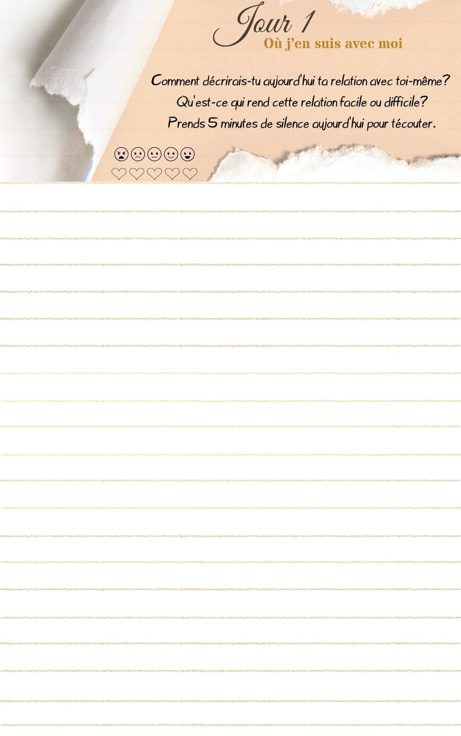 En 10 minutes par jour, crée un espace pour t’écouter, te comprendre, t'apprécier et te choisir.